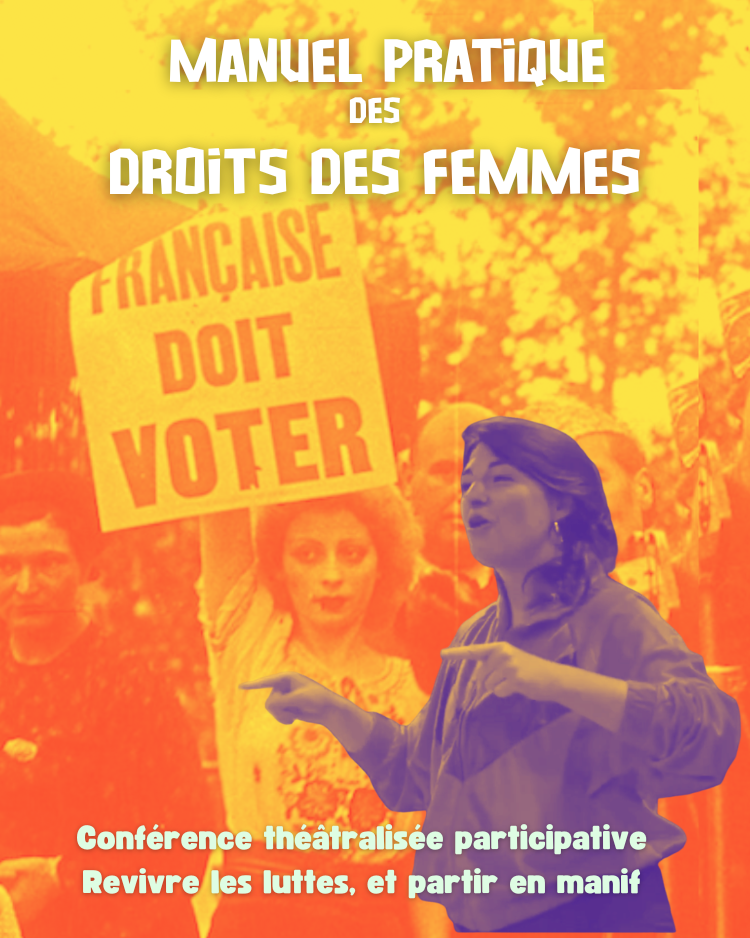 Une « conférence » théâtralisée et participative, pour retracer l’histoire chaotique des droits des femmes de la Révolution à nos jours. Où l’on découvre et joue le Code Napoléon, les suffragettes, Gisèle Halimi et Vanessa Springora… Revivez les luttes qui ont permis les dates-clés que l’on connaît (le droit de vote, l’IVG, la parité…) !